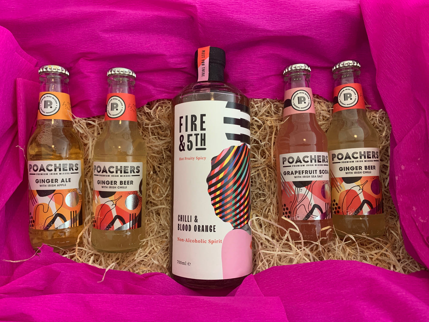 Fire&5th with a selection of premium Irish mixers from Poachers Drinks. Fire&5th is designed to recreate the heat & kick of alcohol and Poachers provides a natural finish that delicately enhances without overwhelming the Fire&5th flavours.